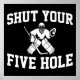 Das Hockey-Themenposter für das Hockey-Goalie verfügt über eine weiße Hockey-Silhouette mit weißem Text, der Shut Your Five Hole lautet.