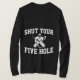 Hockey-Theme-T - Shirt für die Hockey-Goalie bietet eine weiße Silhouette Hockey-Goalie mit weißem Text, der Shut Your Five Hole liest.