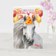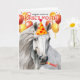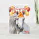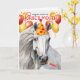 Ein schönes weißes Pferd mit roten und gelben Ballons auf einer Geburtstagskarte für einen großen Pferdefreund, Cowboy oder Cowgirl.