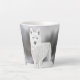 Diese wunderschöne Latte-Tasse ist das ideale Geschenk für einen Husky-Liebhaber. Es zeigt mein Portrait eines weißen Huskys mit blauem Auge vor dem Hintergrund des Winters. Ideal für jede Anlässe einschließlich Weihnachten.