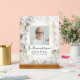Erinnern Sie sich an das Leben Ihrer Lieben nach ihrem Tod mit dem eleganten White Hydrangea Blume Watercolor Celebration of Life Funeral Acrylic Sign. Diese hübsche Gedenkstätte mit Blütenblättern aus Hydrangea-Blume mit weißem Hintergrund und den Worten In Erinnerung zeigt eine digital Aquarellmalung. Fühlen Sie sich frei, den Text zu ändern und personalisieren Sie ihn mit einem Foto, Namen und Daten.
