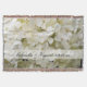 Personalisieren Sie das hübsche White Hydrangea Hochzeitsgraben mit den Namen der Braut und Bräutigam und Heiratszeremonie Datum, um eine persönliche Verlobung, Brautparty oder Brautgeschenk zu schaffen. Diese wunderschöne Brautdecke mit Blumen und Blumen zeigt ein Foto einer Hydrangea-Blume.
