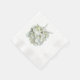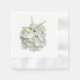 Weißer Seestern und Hydrangea Hochzeitsnapkins mit individuellem Text. Fügen Sie den Namen der Braut und des Bräutigams und das Datum der Ehe schlichten oder geprägten Papierservietten hinzu. Neutrale, weiße und cremefarbene Farben mit schwarzem Skripttext passen zu jedem Empfang mit Strandmotiven.