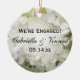 Feiern Sie Ihre ersten Weihnachten als verlobtes Paar und begehen Sie den besonderen Tag mit dem eleganten White Hydrangea Verlobung Round Foto Ornament. Diese klassische Verlobung mit Blumen Weihnachtsschmuck zeigt ein nahes Blumenfoto einer Blume aus weißer Hydrangea auf beiden Seiten.