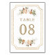 Erleben Sie Ihre Tischnummer mit der eleganten Karte mit wunderschönen Blume und Goldrahmen.