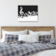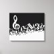White Jumbled Musical Notes on Black Leinwanddruck