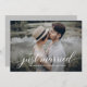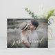 Nur heiraten! Mit diesem Foto-Ausweis kündigen Sie Ihre Hochzeit an. Es verfügt über handgeschriebene Skriptüberlagerung, Herz und einfache Typografie. Personalisieren Sie diese durch Hinzufügen von Namen, Datum, Ort und Nachricht. Dieses Skript Just Married Card ist auch perfekt für Erweiterungen.