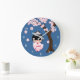 White Kimono Kokeshi Doll Niedlich Geisha Girl Blu Große Wanduhr