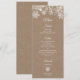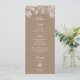 Elegantes Winterwunderland-Hochzeitsmenü mit weißen Schneeflocken auf Kraftpapier-Hintergrund. Ideal für Weihnachts-Hochzeiten, Silvesterabendessen und andere saisonale und urlaubliche Veranstaltungen.