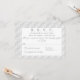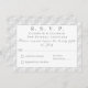 Das Design zeigt die weiße Spitze als Hintergrund Ihrer Information, die in einem silbernen Schriftart mit weißem Hintergrund angezeigt wird. Unter Rubrik steht "R.S.V.P.". Die Namen der Ehepaare, die Stadt und der Staat der Hochzeit werden unterhalb der Überschrift angezeigt. Der erste Nachname des Paares wird in einem großen, weißen Schriftart auf der gegenüberliegenden Seite angezeigt. Sehr elegant. Konzipiert zur Koordination mit der Mit Monogramm Hochzeitssuite-Kollektion von White Lace.