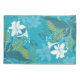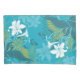 Weiße Lilien mit blauem Hintergrund. Gelbe Akzente.