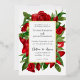 Ein Blumenarrangement befindet sich unter den Einzelheiten der Hochzeitsfeier für diese schöne rote Blume Einladung. Der Rahmen für die Details ist in realer Folie (Gold, Silber oder Rose). Die Rückseite der Einladung ist weiß.