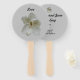 Dieses Foto einer cremefarbenen Südmagnolia erscheint auf diesem handgeführten Ventilator, der sicher Ihre Gäste cool behalte. Sie können jeden Text sowie die Hintergrundfarbe leicht an Ihren Anzug anpassen. Diese Magnolie ist elegant und zeitlos und erscheint auf anderen vollständig anpassbaren Produkten.