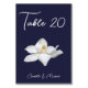White Magnolia Elegant Floral on Navy Wedding Tischnummer ist mit einer kühnen Magnolia Blüte auf einem Navy Hintergrund entworfen. Der erste Text enthält: die Namen von Braut und Bräutigam, Tabelle und eine Zahl. Zum Personalisieren fügen Sie einfach die Tischnummer und die Braut- und Gräuelnamen zu jeder bestellten Karte hinzu. Hinweis: Bestellen Sie eine Karte pro Tischnummer. Die Nummer wiederholt sich automatisch auf der Rückseite jeder Karte. Achten Sie bei der Bestellung darauf, dass jede Karte eine Single-Nummer hat.