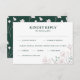 Eine einfache, aber elegante RSVP-Karte mit Vorlieben zum Essen, die aus einer weißen Magnolia und Eukalyptus-Grenze auf einem smaragdgrünen Hintergrund besteht. Für Fragen oder Anfragen kontaktieren Sie uns bitte über den Chat.