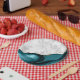 Elegant white marble and teal blue agate gilded with falsch gold glitter kombiniert in this luxurious design.