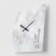 White Marble Modernes Script Personalisiert Name Quadratische Wanduhr
