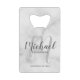 White Marble Modernes Script Personalisierte Trauz Geldbeutel Flaschenöffner