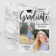 Elegante Moderne Grauweiße und Schwarz Marmor Foto Abschluss Announcement Card, mit weißer Schrift, ideal für den Absolvent, um die große Leistung bekannt zu geben. Fügen Sie Ihre beiden Fotos vorne hinzu, zusammen mit den Details der Graduierungsparty auf der Rückseite. Klassische und fette Marmormustern zeichnen sich durch Klasse und Eleganz aus.