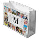 Create your own personalized 16 photo collage gift bag with your custom images and monogram on a stylish elegant white marble background.