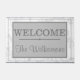 Im unteren Teil der Matte wird ein Familienname oder Nachname des Musters gedruckt. Sie können die Tür personalisieren, um Ihren eigenen Familiennamen, Firmennamen oder Firmennamen oder eine individuelle Nachricht oder ein individuelles Angebot einzuschließen.