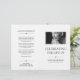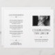 Sauberes und minimalistisches Begräbungsprogramm in dunkelgrau und weiß, mit eleganten Schriftart. Fügen Sie ein Foto Ihrer Lieben zusammen mit ihrem Namen und Lebensjahren hinzu. Auf der Rückseite können Sie das Programm schreiben und schreiben. Falten Sie es selbst für ein praktisches Programm!