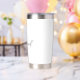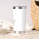 Ein moderner weißer, minimalistischer Schriftzeichen-Kalligraphie-Bräunungstumbler ist ideal für Junggeselinnen-Abschied-Geschenke.