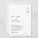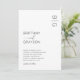 Minimale Schwarz-Weiß-Einladungen mit Ihren Initialen in der oberen rechten Ecke, eine elegante, moderne Textvorlage mit Ihren Namen und die Hochzeitsinformationen.