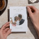 Modern and chic. This lovely wedding save the date card features a circular couple photo, floral boho blush rose accents and a contemporary set of fonts. Forms part of a full wedding suite with matching stationary in mix and match olive green, ivory. and white.