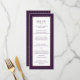 Dieses elegante, moderne Hochzeitsmenü aus Jahrgang 1998 besticht durch einen einzigartigen Rahmen in Imitaten mit Goldfolie vor einem lila Hintergrund. Inspiriert durch die Faltkleider aus den 20er Jahren. Die Formulierung ist in einer passenden Pflaumenfarbe auf weißem Hintergrund gehalten, was das Lesen erleichtert. Der Hintergrund ist ein kunstvolles Deko-Folientmuster, das die Erholung der Hochzeitskollektion "Vintag Beaded" vollständig ergänzt. Mit diesem Design-Menü können Sie sicher sein, dass Ihre köstlichen Speisen auf phantastische Art und Weise hervorstechen. Sie können den Wortlaut und die Farben ändern, um Ihre Hochzeitspalette zu ergänzen.