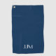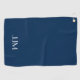 Golf Handtuch mit weißen drei ersten Monogramm oder Name auf einem marineblau Hintergrund. Personalisieren Sie Ihre drei ersten Monogramme oder Namen mit der einfachen Vorlage. Schriftart, Schriftart und Schriftart sind individuell einstellbar.