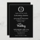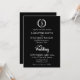 White Monogram Wreath auf Black Wedding Einladung