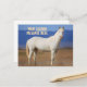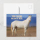 Diese schöne weiße Senf-Postkarte bietet ein atemberaubendes Foto eines weißen Pferdes auf einer Ranch des Westerns. Fügen Sie Ihre eigene benutzerdefinierte Nachricht hinzu, um dieses Design zu machen Sie selbst! Fotografie erstellt von der preisgekrönten Fotografin Maria Jeffs.