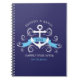 Eleganter, weißer und hellblauer Anker mit eleganten weißen Wirbel und einem hellen Banner auf dunkelblauem Hintergrund - perfekt für ein maßgeschneidertes Hochzeitsmonogramm.