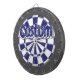 Personalize with your custom text! White, Navy Blue, And Charcoal Gray Colored Dartboard Including 6 Brass Darts