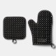 White On Black Polka Dots Pattern With Custom Name Ofenhandschuh & Topflappen-Set