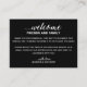 Dieser hübsche weiße Text auf der schwarzen Willkommenskarte, der in Ihrem Begrüßungsbeutel oder -korb in der Unterkunft platziert ist, ist eine gute Möglichkeit, Ihren Gästen aus der Stadt für die Reise zu danken, die sie für Ihre Hochzeit benötigen. Passende Bürobedarf und Party sind vorhanden.