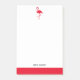 White on Bright Red Flamingo & Border mit Namen Post-it Klebezettel