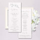 Eine grafische Skizze eines schlichten, weiß-orchitischen Zweiges, handgezeichnet in Grafit, schmückt dieses elegante, schwarz-weiße, einfache, elegante und moderne Hochzeitsfeierprogramm, das das ganze Jahr über, im Sommer, Frühling, Herbst oder Winter perfekt ist. Es zeichnet sich durch moderne, elegante Skriptkalligraphie mit großem Schnörkel aus. Luxuriös aber einfach, klassisch, aber elegant, modern, aber zeitlos. Eine schöne Wahl für ein Ehepaar, das zu jeder Jahreszeit heiraten und die Ästhetik der Schwarz-Weiß-Kunst für die Hochzeitskunst, Schwarz-Weiß und Orchideen mag.