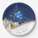 Dieses klassische blaue Weißbuch-Plakat mit Weihnachtsgold und weißen Ornamenten mit einer goldenen Perlenkette und einem stilisierten Weihnachtsbaum. Personalisieren Sie es mit Ihren eigenen Worten.