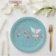 Weiße Taube mit PEACE-Text auf Schneeflockenmuster.