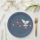 Weiße Taube mit PEACE Text auf Schneeflocke und Sternmuster.