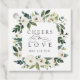 Unsere Hochzeitskollektion mit weißer Peonie in Aquarellfarben mit zart bemalten Aquarellen, grünem botanischem Blattwerk und Blume mit weißem und elfenbeinfarbenem Peony. In klassischer Schrift mit Akzenten kalligrafischer Schriften erscheint "Liebe bejubeln". Personalisieren Sie diese Gefälligkeitstags mit Ihren Initialen und Ihrem Hochzeitstermin oder Ihrer Wahl des benutzerdefinierten Textes.