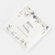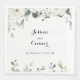 Eine dezente, weiße Hochzeitseinladung mit einer zart bemalten Aquarellfarbe aus weißen Tornfloralen und Eukalyptusgrün mit einer traditionellen handgeschriebenen Schrift in einer schwarzen Kalligraphie kündigt Ihre Hochzeit an.