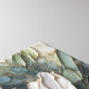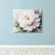 Delikate, weiße Torfblätter bilden eine blühende Blume, die durch grüne und weiche rosa Highlights in schweren Impasto-Farbstrichen hervorgehoben wird