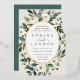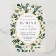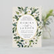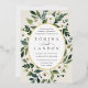 Unsere Einladung zur Trauung von White Peony umgibt Ihre Hochzeitstage-Details mit einem anmutigen ovalen Rahmen aus bemaltem Aquarell, botanischem Blattwerk und Blume aus weißer Rose und Peony. Die Goldfolienbespannung rundet das Aussehen nach einem luxuriösen Finish ab.