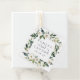 Unsere Hochzeitskollektion mit weißer Peonie in Aquarellfarben mit zart bemalten Aquarellen, grünem botanischem Blattwerk und Blume mit weißem und elfenbeinfarbenem Peony. Personalisieren Sie diese quadratischen Gefälligkeitstags mit Ihren Namen und Hochzeitsdatum, verbunden mit einem dekorativen Skriptakzent.
