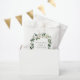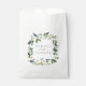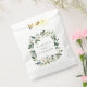 Unsere Hochzeitskollektion mit weißer Peonie in Aquarellfarben mit zart bemalten Aquarellen, grünem botanischem Blattwerk und Blume mit weißem und elfenbeinfarbenem Peony. Personalisieren Sie diese Gefälligkeitssäcke mit Ihren Namen, verbunden mit einem dekorativen Schriftzeichen Akzent.