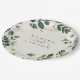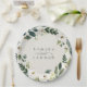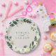 Unsere Hochzeitskollektion mit weißer Peonie in Aquarellfarben mit zart bemalten Aquarellen, grünem botanischem Blattwerk und Blume mit weißem und elfenbeinfarbenem Peony. Personalisieren Sie diese Teller mit Ihren Namen, verbunden mit einem dekorativen Skriptakzent.