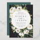 Unsere Einladung zur Trauung von White Peony umgibt Ihre Hochzeitstage-Details mit einem runden Rahmen aus bemaltem Aquarell, botanischem Blattwerk und Blume aus weißer Rose und Peony, Set außerhalb des Zentrums am oberen links für einen frischen, modernen Look. Die Goldfolienbespannung rundet das Aussehen nach einem luxuriösen Finish ab.